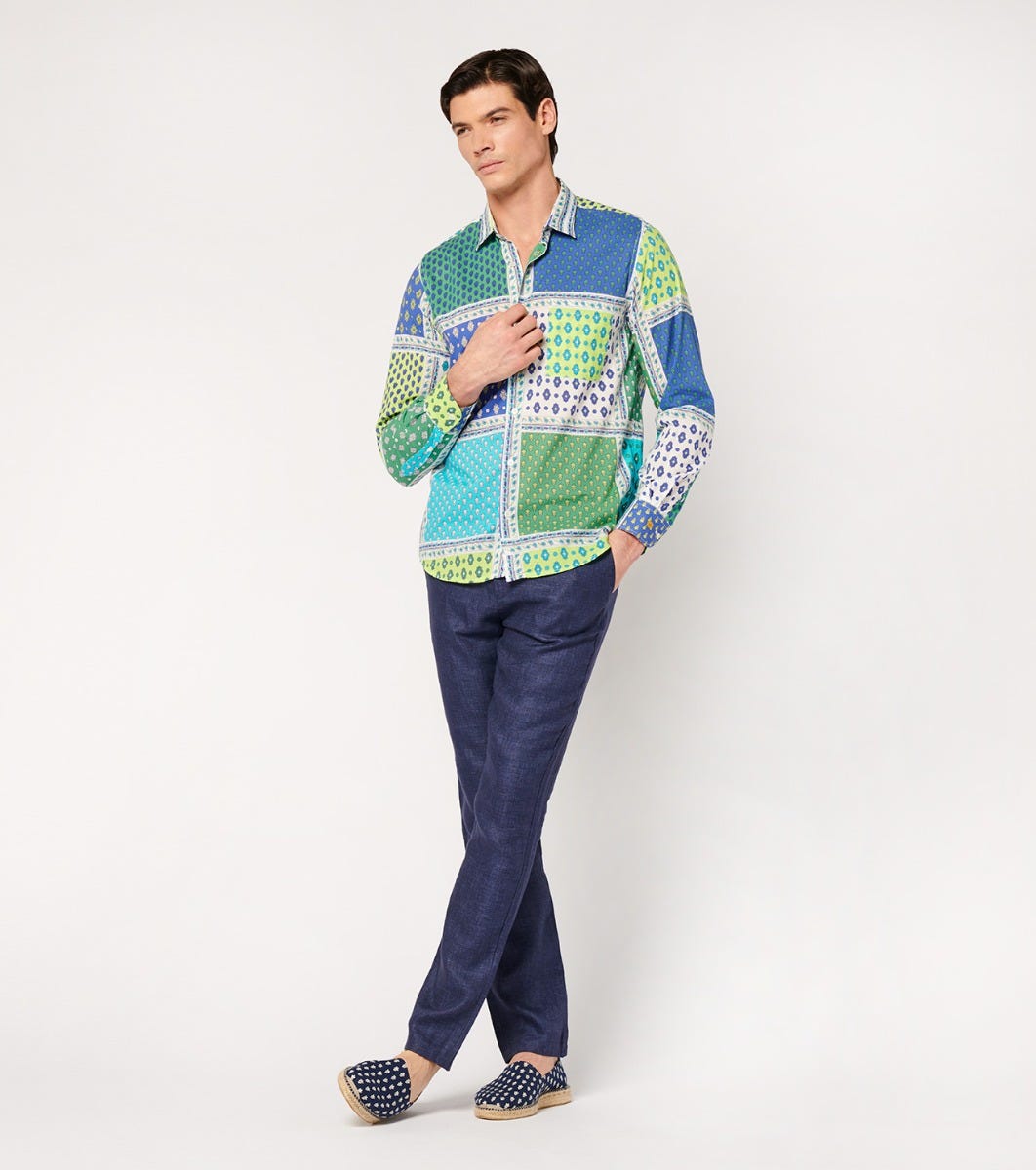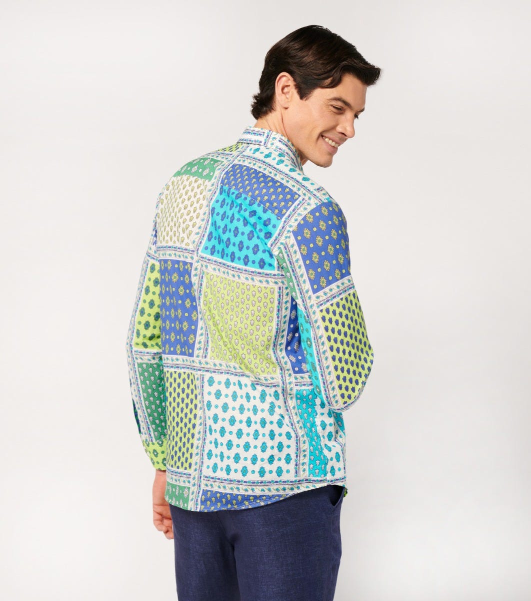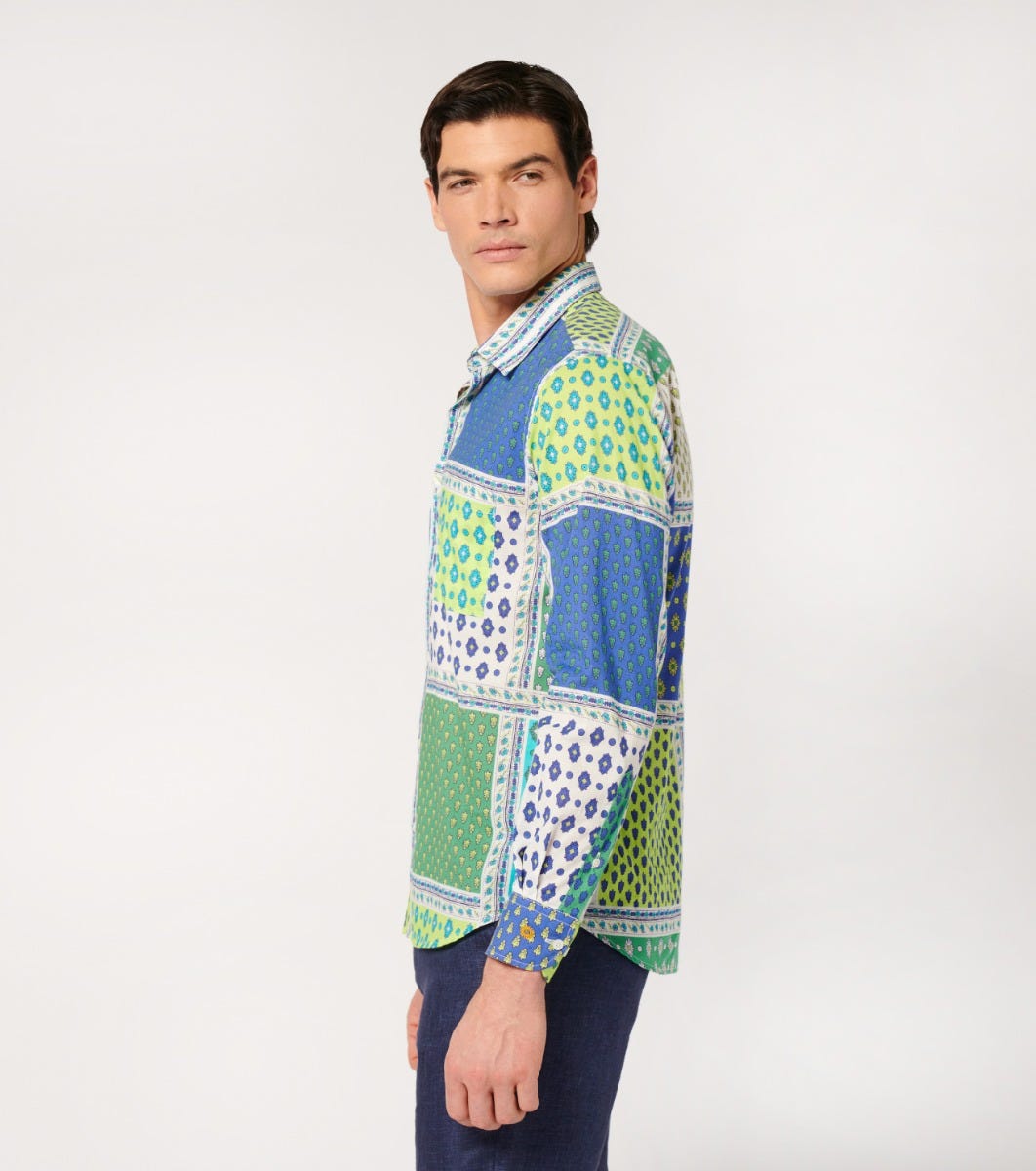 Souleiado Men’s Green & Purple Regular “italienne” Shirt | Vert & Violet