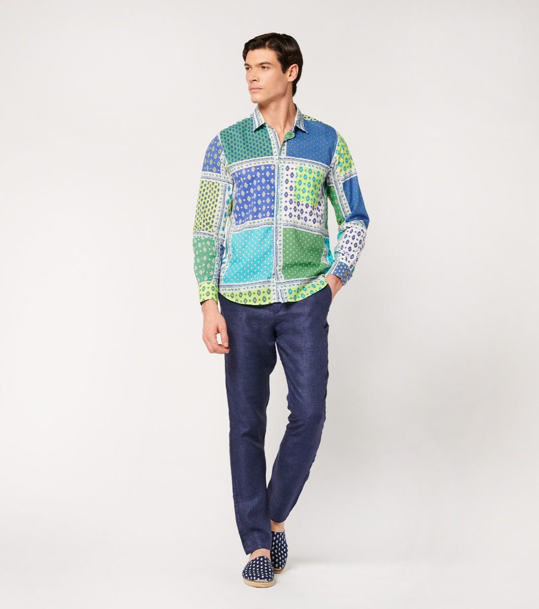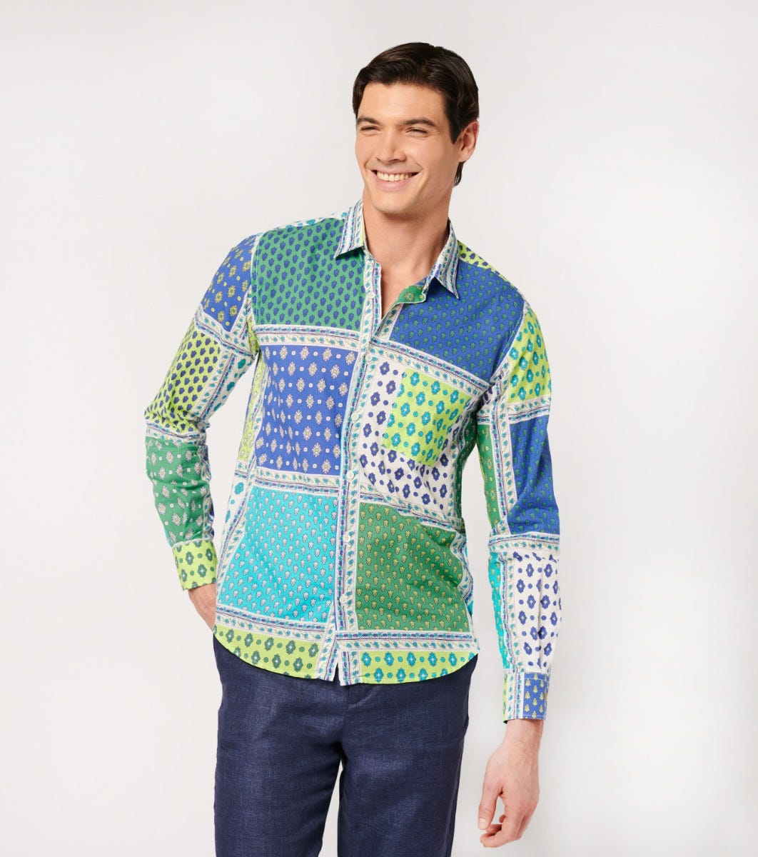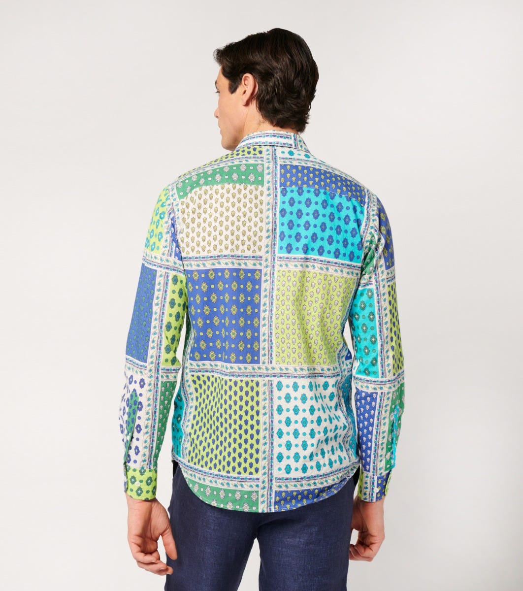 Souleiado Men’s Green & Purple Regular “italienne” Shirt | Vert & Violet