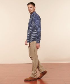 - “Frédéri, our classic shirt with a straight cut and French shirt collar with a patch pocket on the heart side. A straight fit that favors comfort and a short, slightly flared, reinforced collar that’s easy to wear.