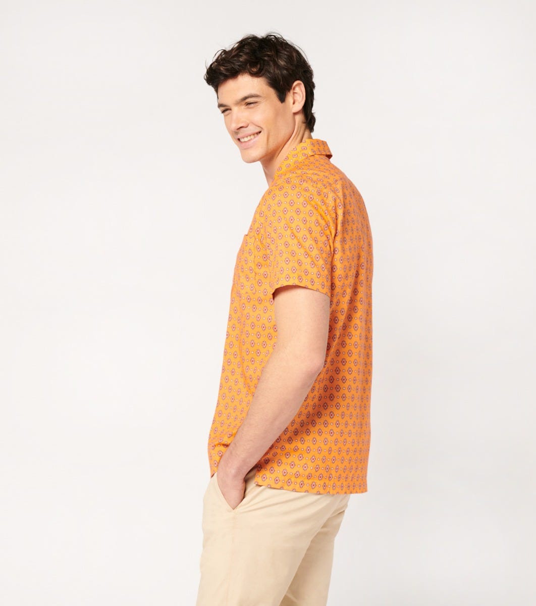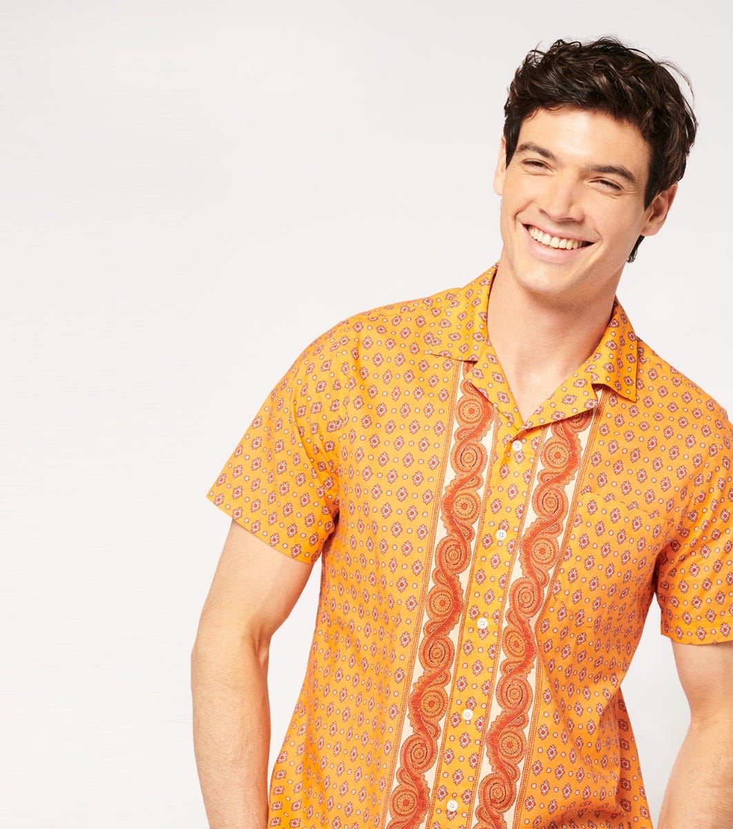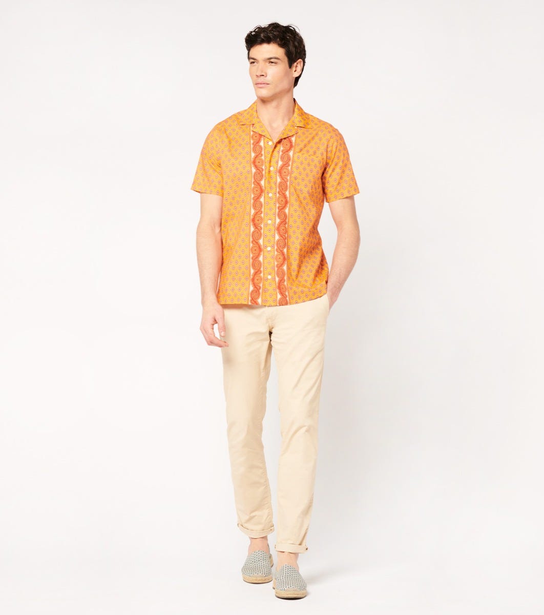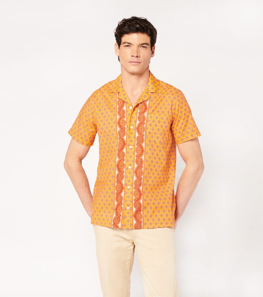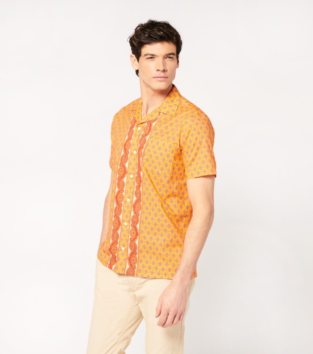 - Bodega, our Hawaiian shirt with a straight cut and shark collar, featuring a patch pocket on the heart side. A straight fit that favors comfort, perfect for a modern, casual look.