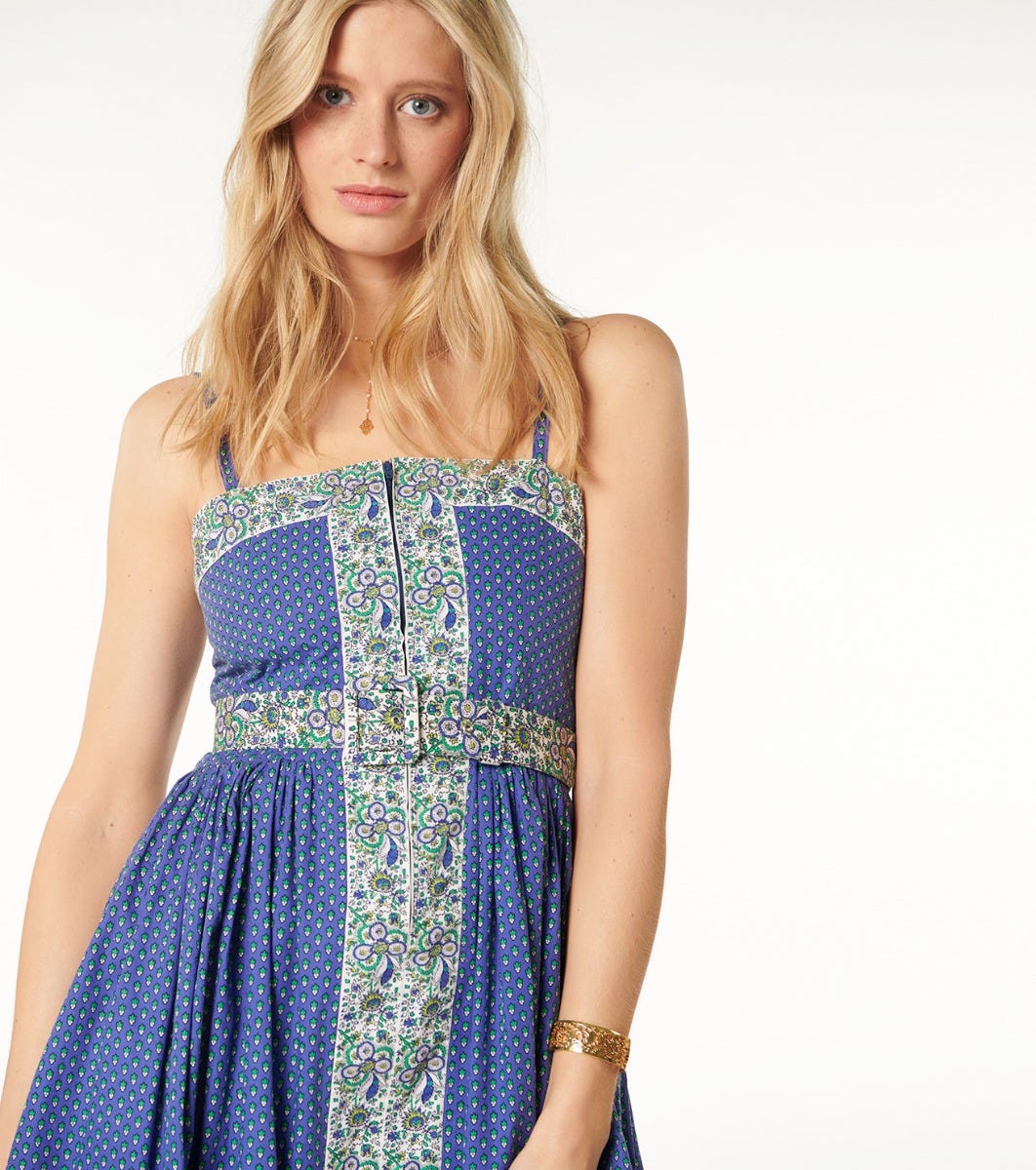 - Thistle border in lavender and mint on the top of the bust, middle front and bottom of the skirt