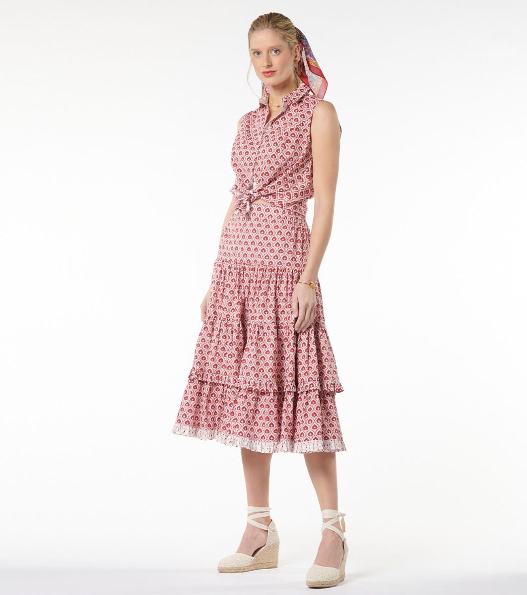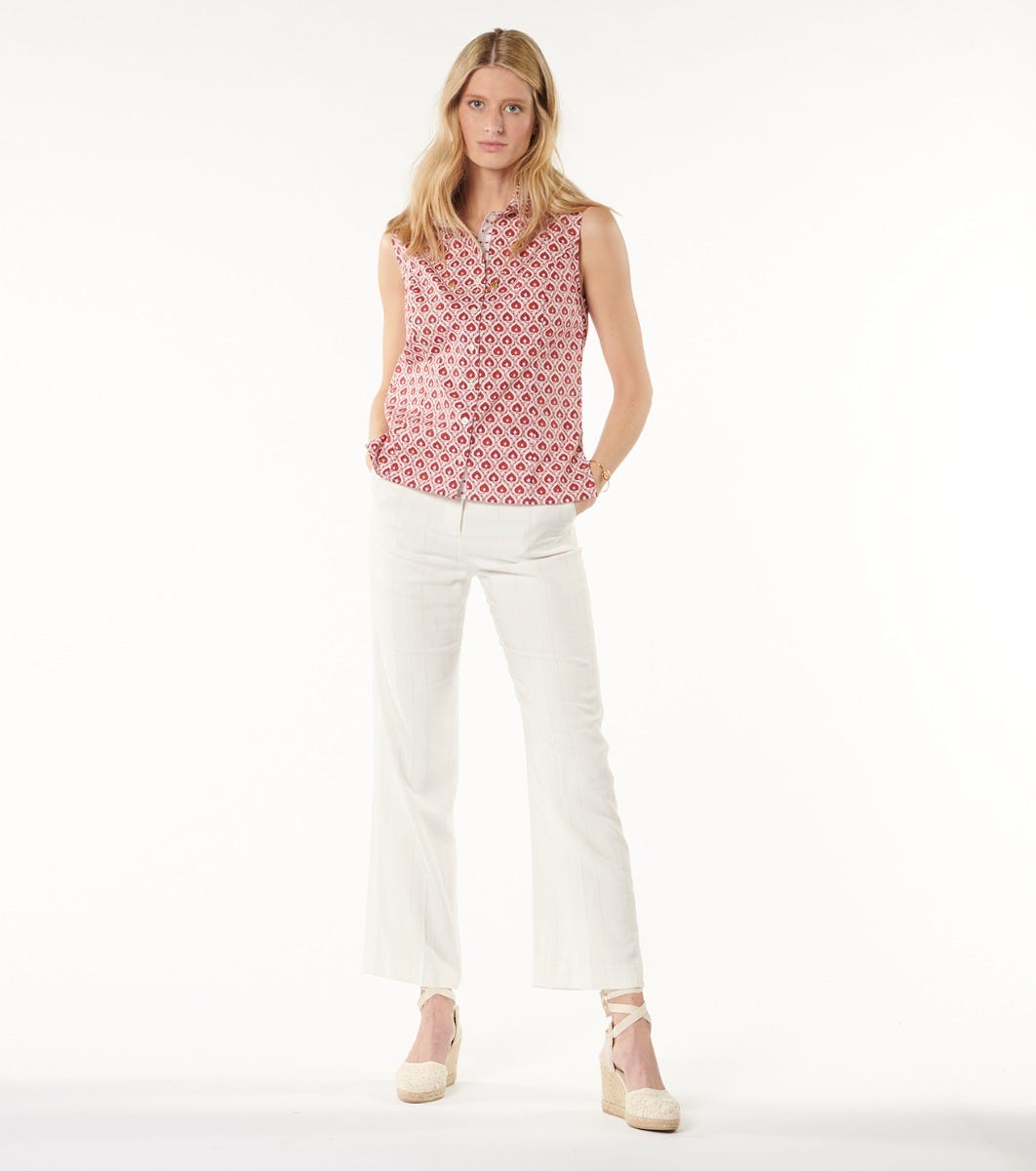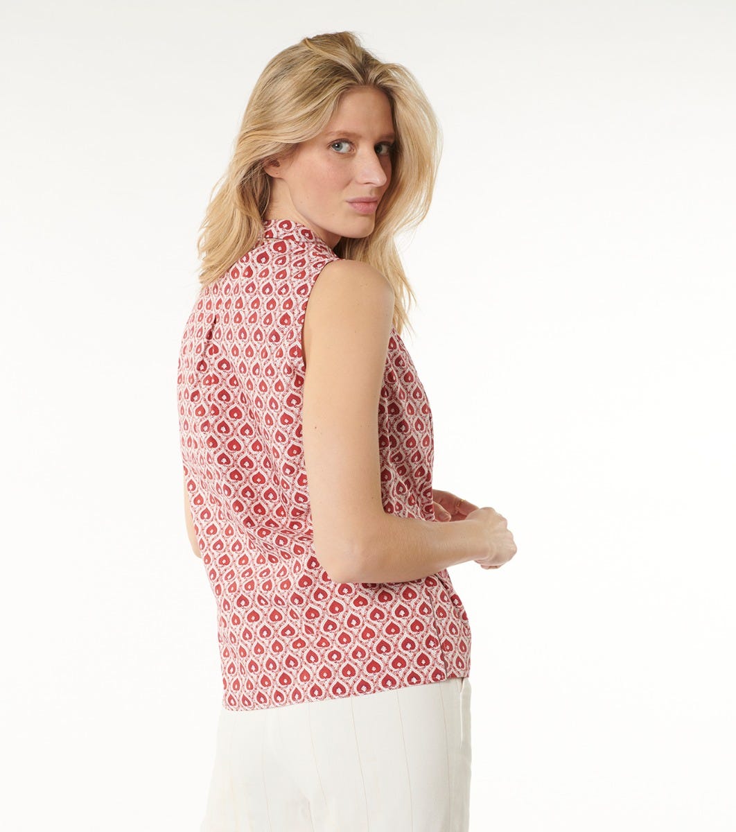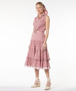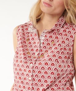 - Buttoned placket in the middle front with contrasting under placket printed frieze Little red Narcissus
