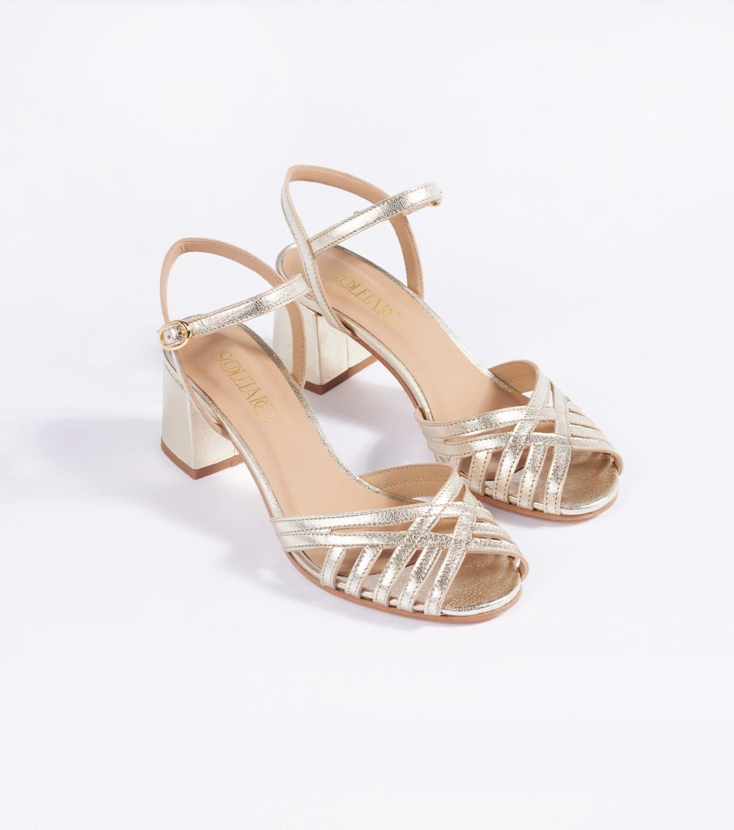 - Sandals with open toe straps in gold color