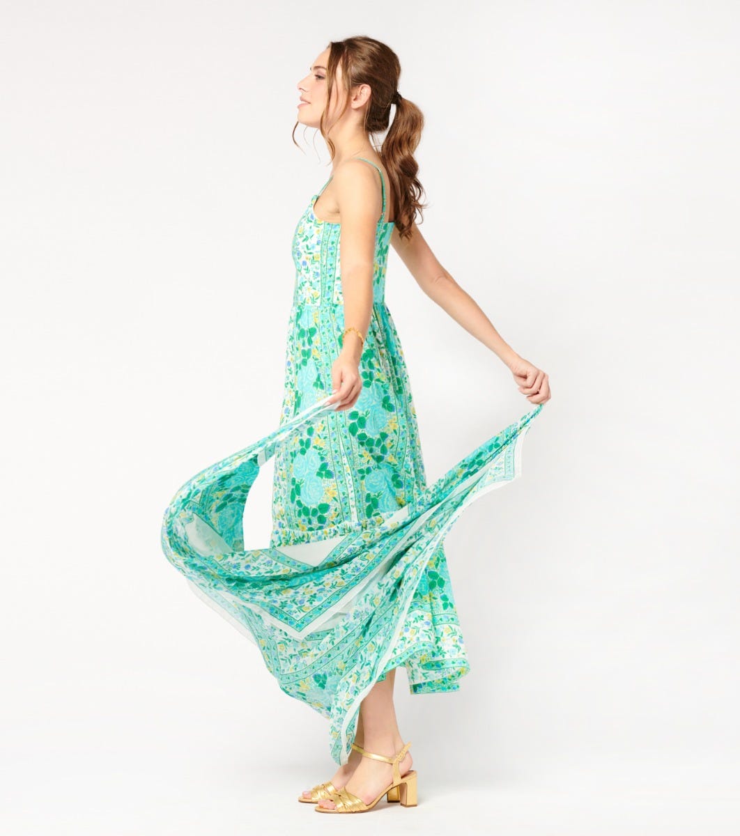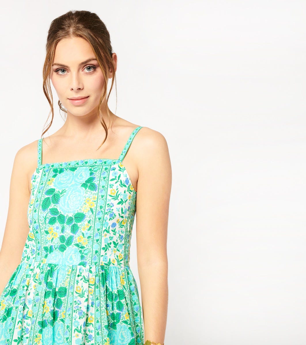 - In cotton batiste printed with our “Dolce vita” motif in mint turquoise
