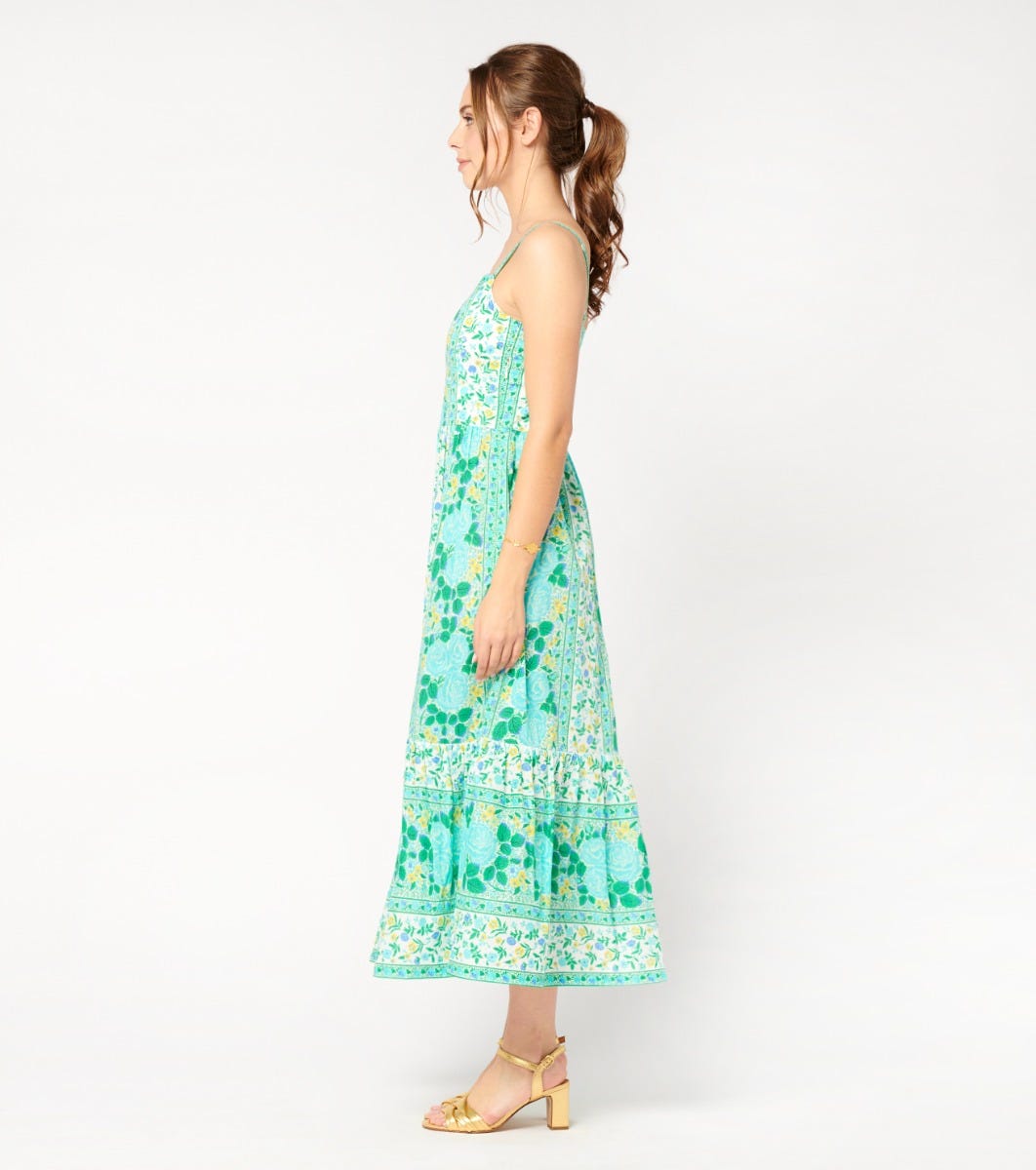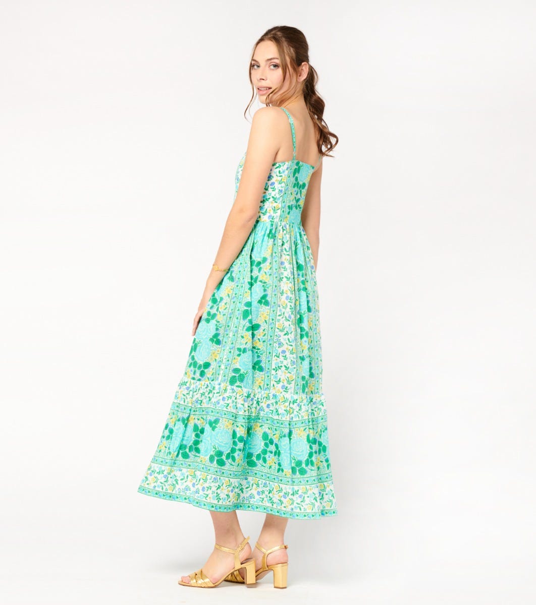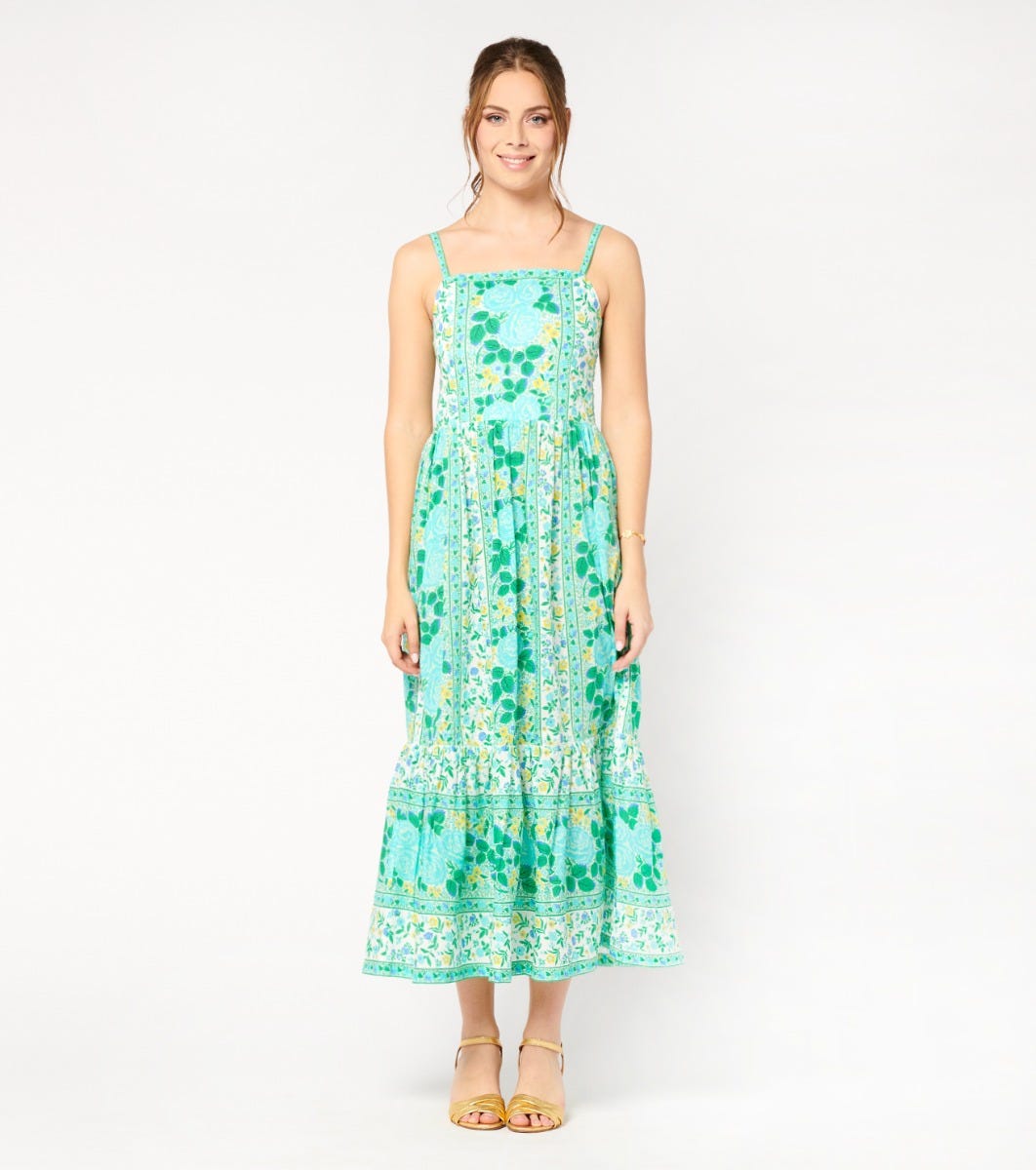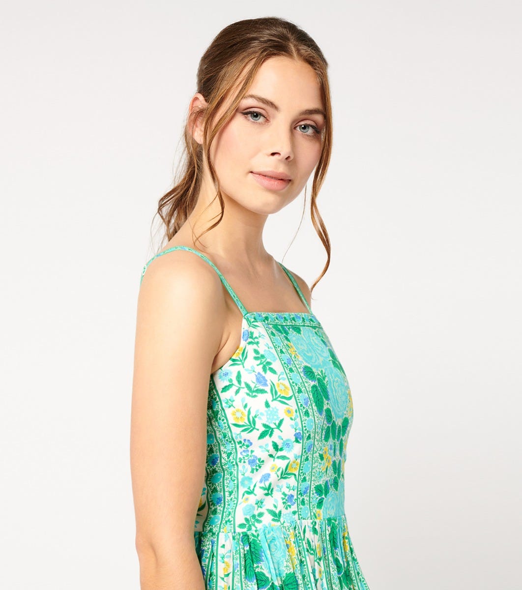 - Frise tesoro turquoise menthe” printed braid on straps and upper neckline