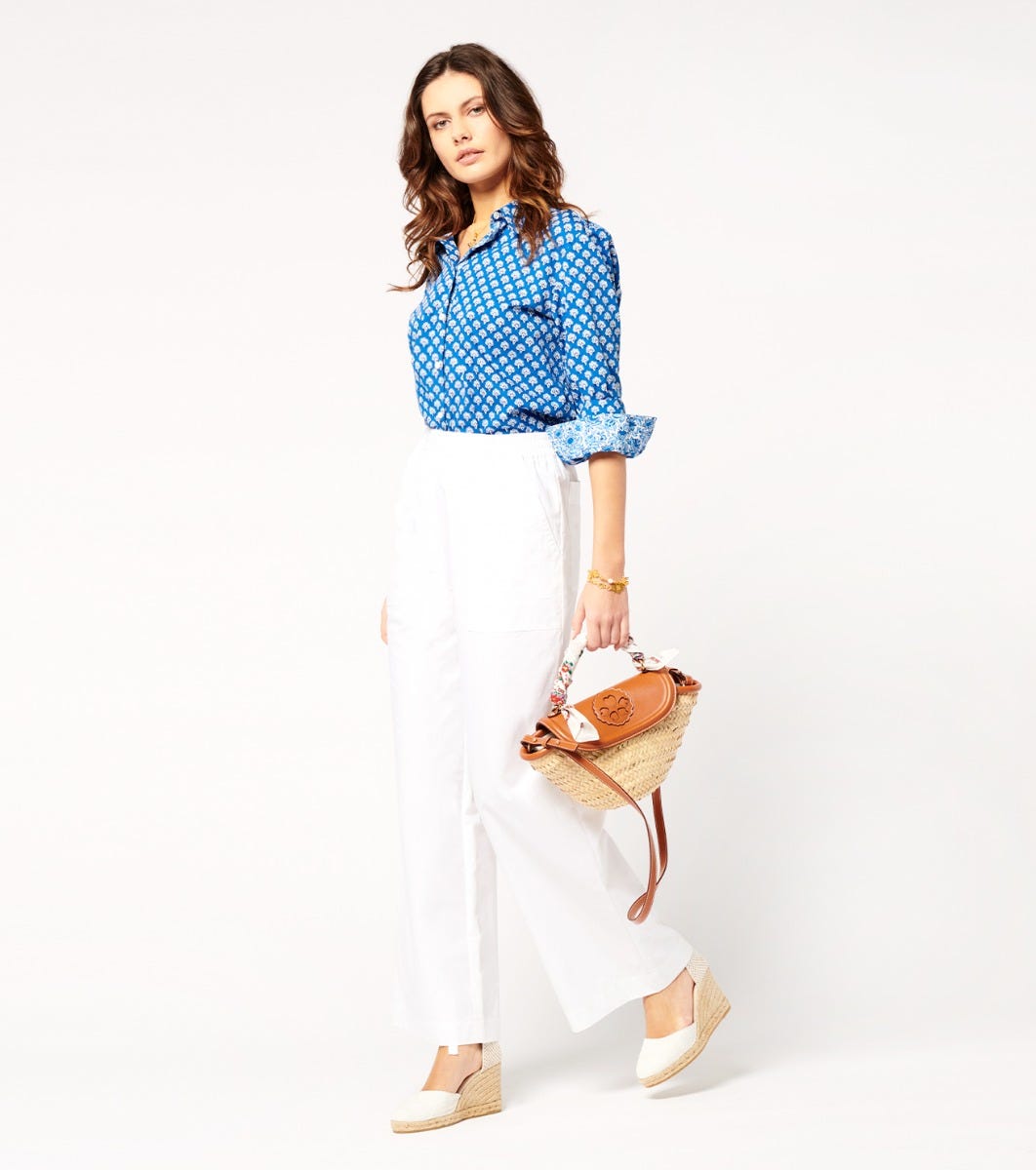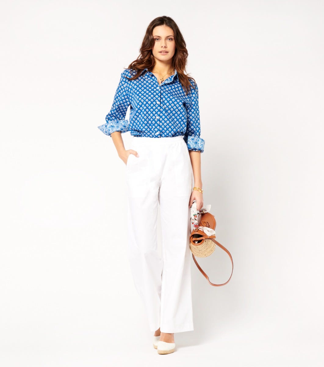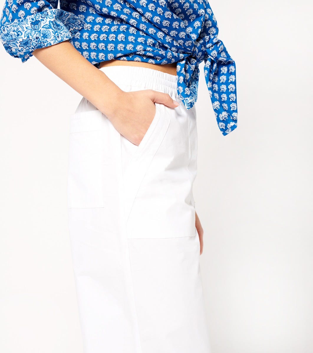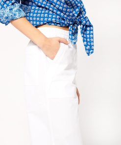 - The Cogolin pants revisit the cargo style, combining comfort and femininity. Their cargo-inspired cut and structured fabric offer an elegant yet practical look. At the same time, its elasticated waistband with interior drawcord emphasizes the silhouette in a flattering way, and wide hems lightly add a casual touch. Its streetwear look is feminized by topstitching details on the waistband and pockets. Pants with a resolutely modern look, ideal for a casual look.