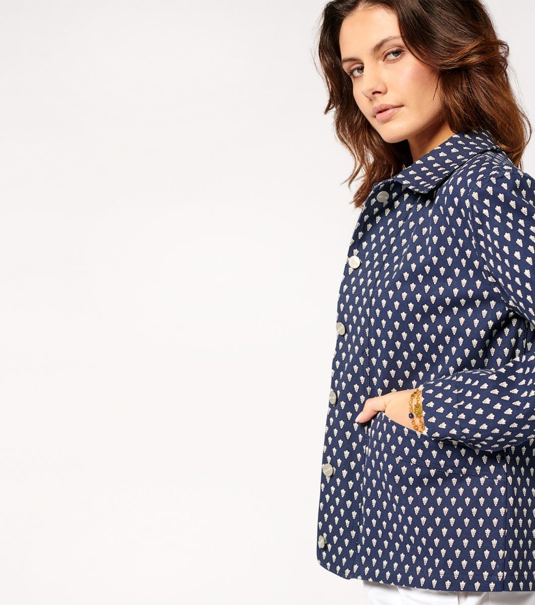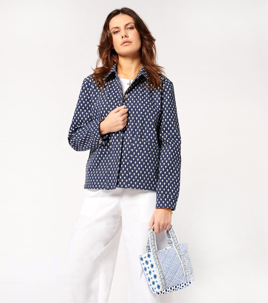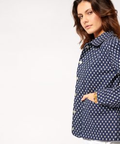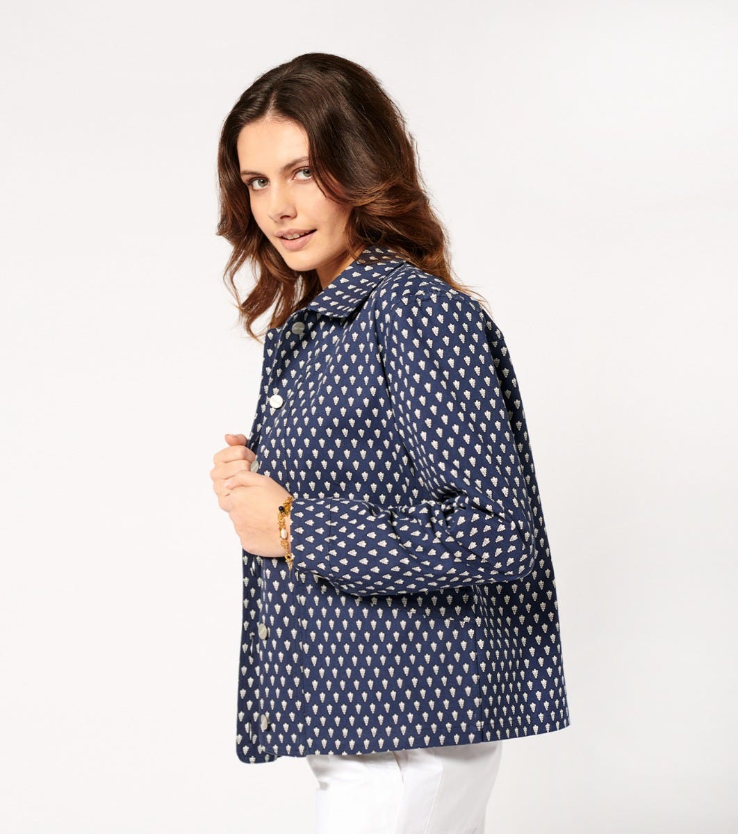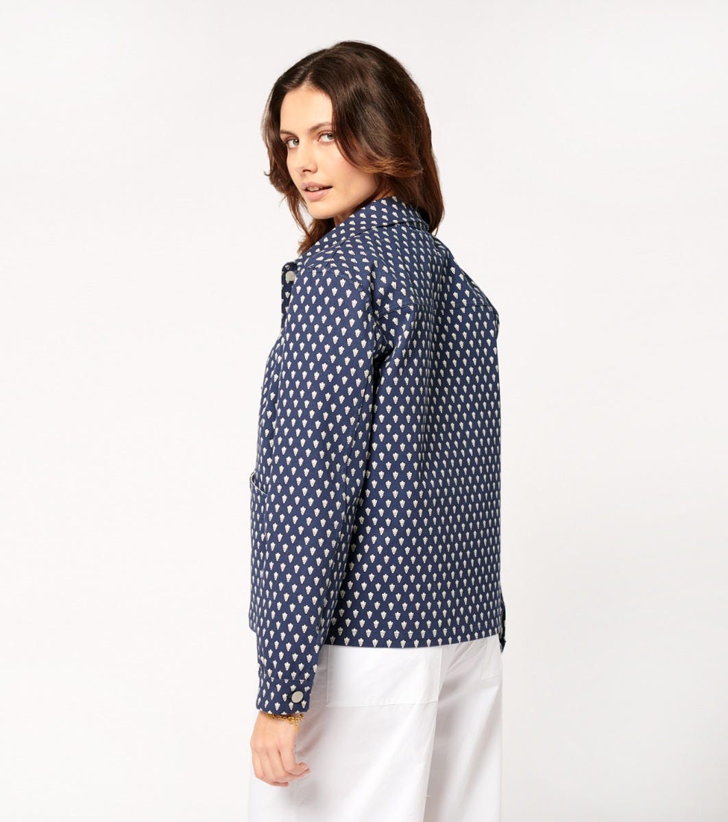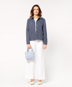 Souleiado Women’s White “mouche” Marine Background Gisele Denim Jacket | Marine Et Blanc
