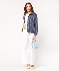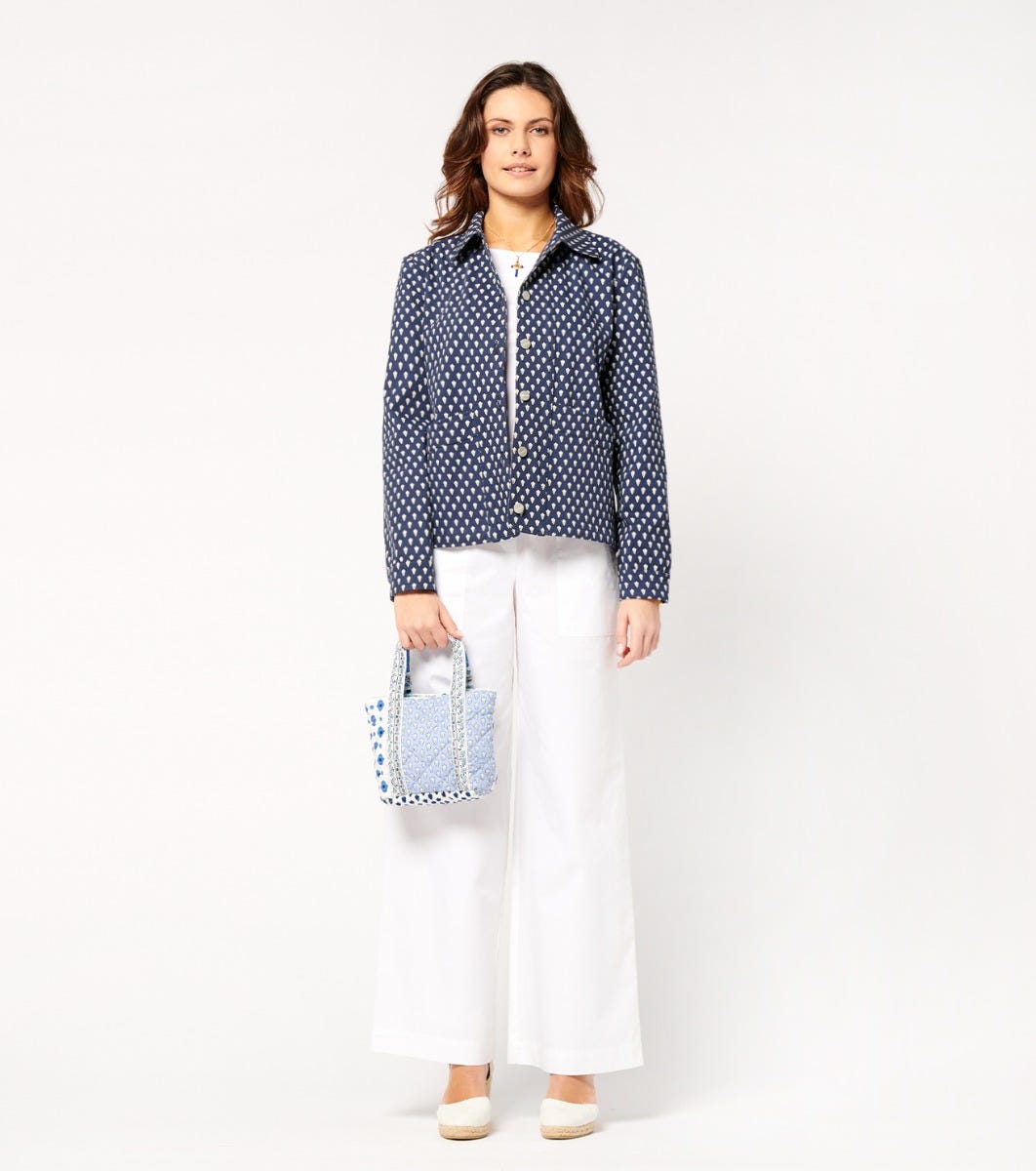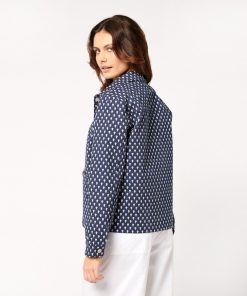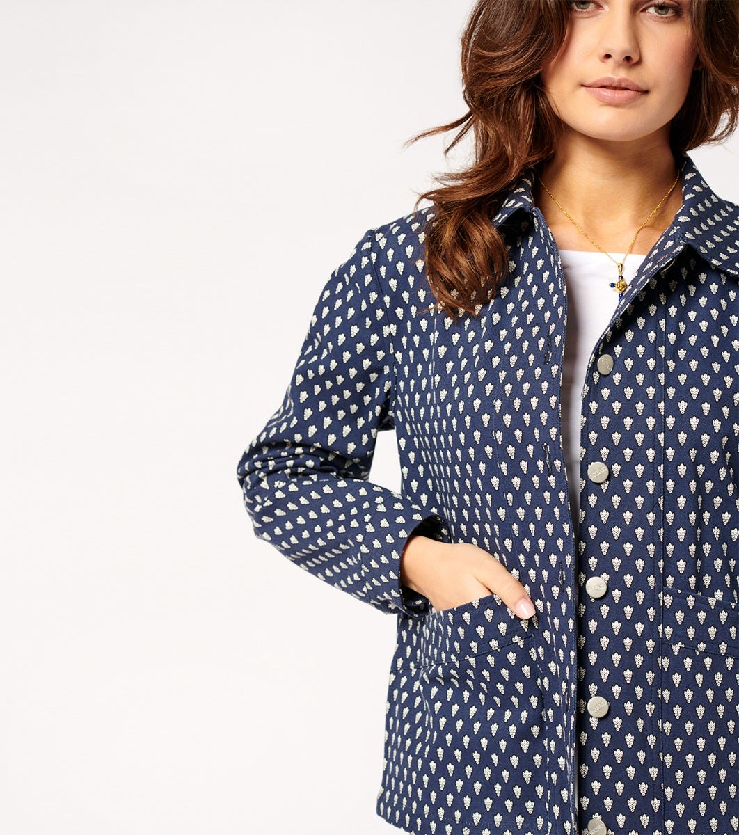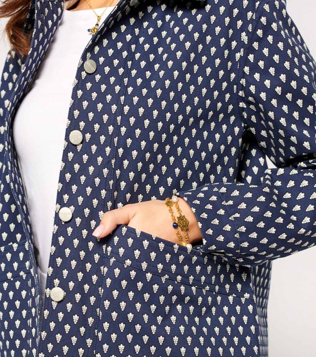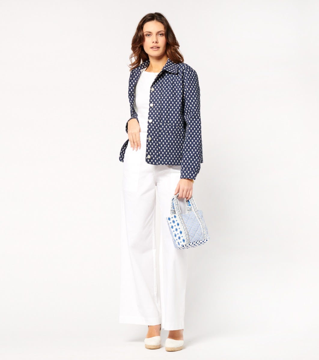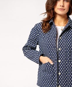 Souleiado Women’s White “mouche” Marine Background Gisele Denim Jacket | Marine Et Blanc