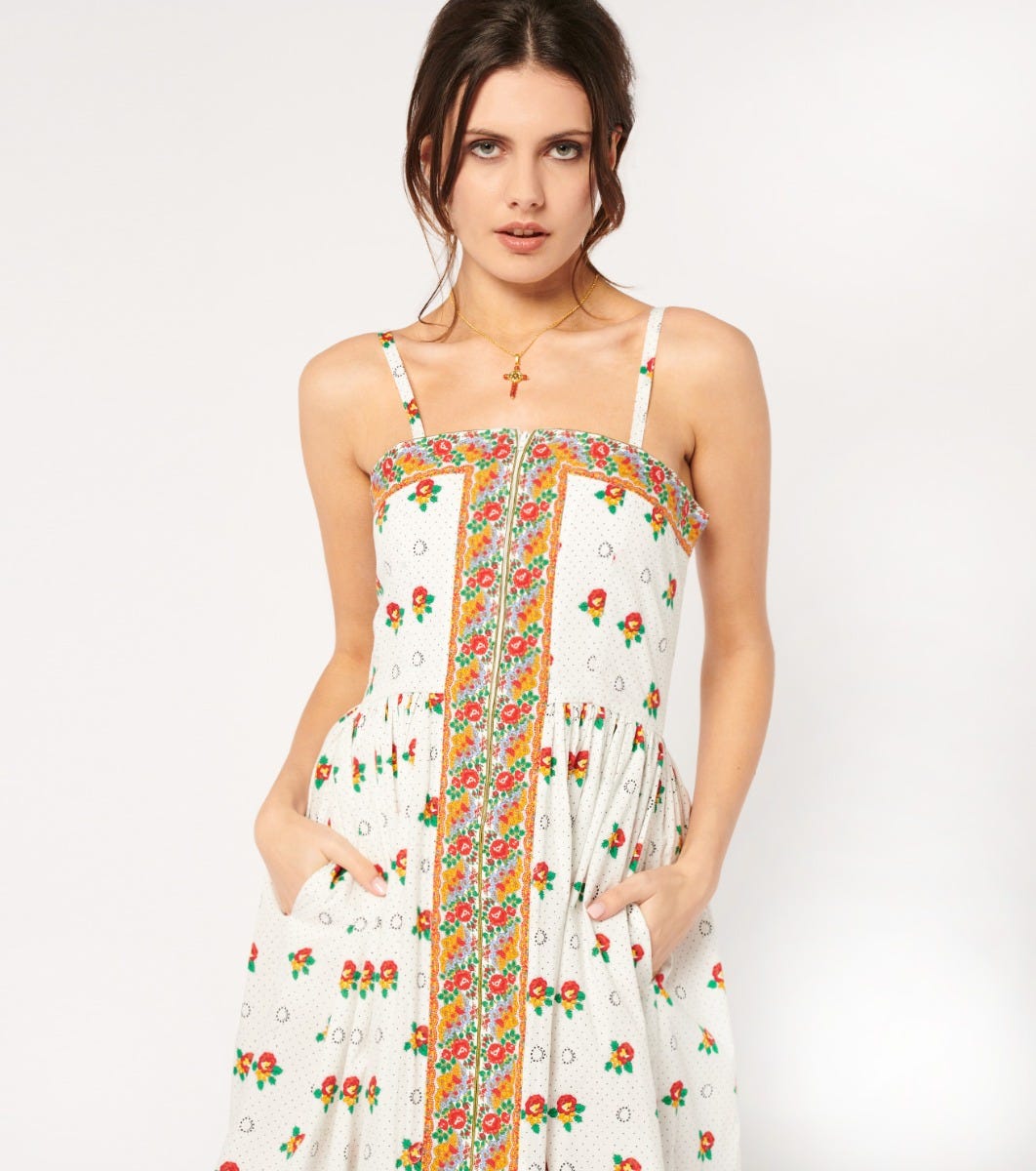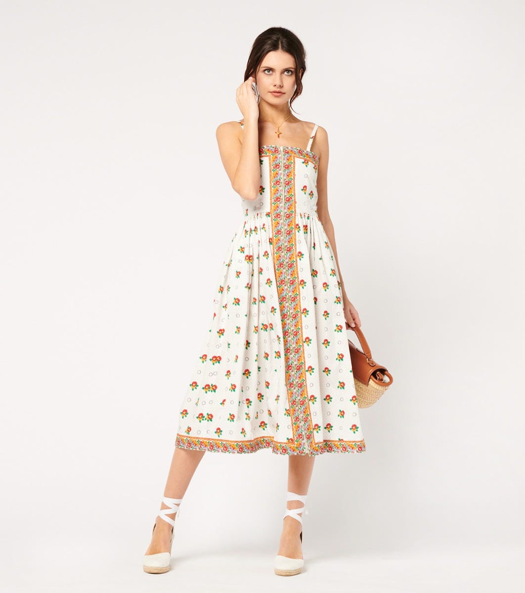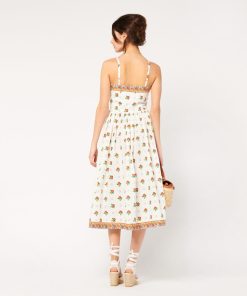 Souleiado Women’s White Orange Jeannette “printemps” Dress | Blanc Et Orange